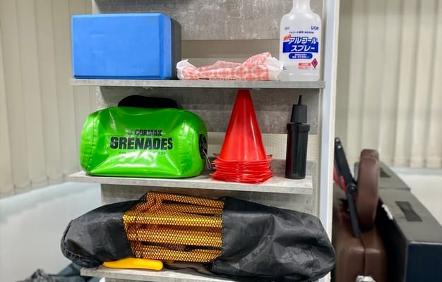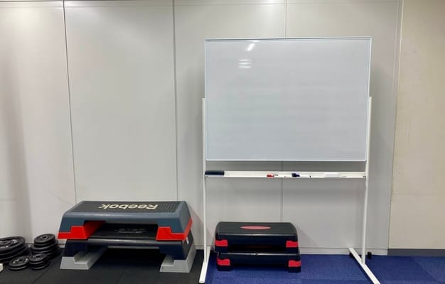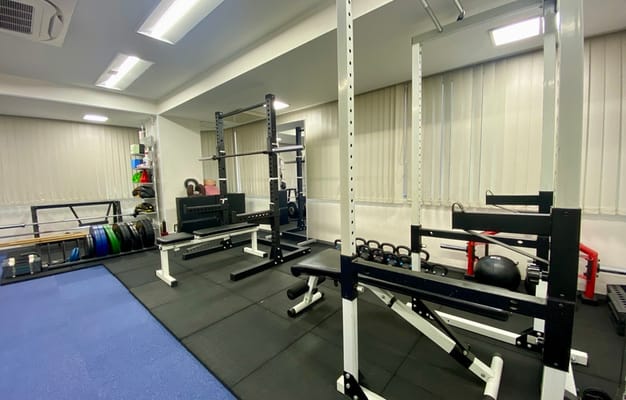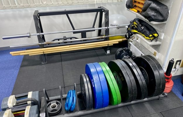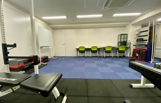 ◆備品 : ●トレーニング器具 トレーニングラック(ラットプル付き)×1 ハーフラック×1 バーベルシャフト×3 バーベル用プレート(2.5kg~20kg) パワーブロック×1 ケトルベル(4~20kg) ステップ台×4 バランスボール×3 ストレッチポール ヨガマット×5 簡易マッサージベッド ダンベルミット メディシンボール5kg,8kg TRX ラダー ヘックスバー など ●その他 Wi-Fi プロジェクター ホワイトボード スピーカー 更衣室 鍵付きロッカー 水販売あり