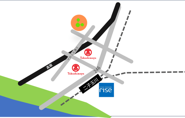二子玉川駅と高島屋の交差点の近くで便利な立地です。2025年に内装をフルリノベーションしましたので新築のような気持ちの良い環境でトレーニングできます。
